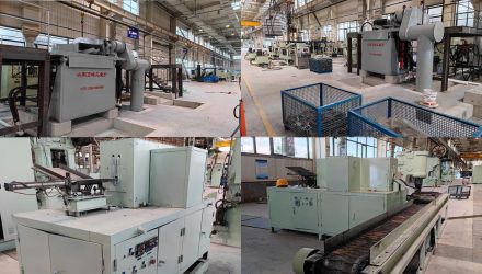 生產(chǎn)線組件:感應(yīng)熔煉爐; 鋁合金壓鑄設(shè)備; 感應(yīng)加熱爐; 鋁合金鍛造設(shè)備; 冷卻機; 集塵器;?