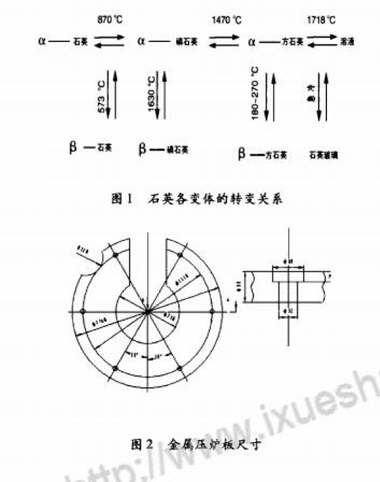 目前國內(nèi)中頻爐用于熔煉鑄鐵的普通爐襯材料使用的是SiO:石英砂。自然界的石英是低溫型的。開始加熱時(shí),石英砂隨溫度升高而均勻膨脹。在573~C時(shí)發(fā)生同質(zhì)異晶轉(zhuǎn)變,低溫石英轉(zhuǎn)變成高溫目前國內(nèi)中頻電爐用于熔煉鑄鐵的普通爐襯材料使用的是SiO:石英砂。石英后因晶體轉(zhuǎn)變而突然膨脹(這個(gè)轉(zhuǎn)變是可逆的)。高溫石英砂在870~C以上和有溶劑存在的條件下會(huì)轉(zhuǎn)變成磷石英,但轉(zhuǎn)變速度很慢。升高溫度可加快轉(zhuǎn)變,但即使在1250—1350℃高溫下亦需1小時(shí)左右才能完成。此時(shí)體積增大1.6倍,磷石英在1470℃以上變成方石英。方石英在1713℃以上融化,冷卻后變成石英玻璃,如圖1所示。