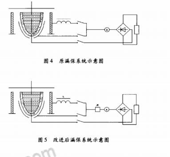 冶金機(jī)械有限公司投資兩千多萬(wàn)元打造的一條具有國(guó)內(nèi)先進(jìn)水平的軋輥生產(chǎn)線,其主體設(shè)備是3T、10T中頻電爐,整個(gè)熔煉過(guò)程采用全程控制圖形化操作界面。在運(yùn)行過(guò)程中發(fā)現(xiàn)電爐在使用一定爐次以后,由于爐襯膨脹、疏松,鐵水極易穿透爐襯。為確保生產(chǎn)正常運(yùn)行,提高爐體的使用壽命。對(duì)爐體提出改進(jìn)設(shè)想并對(duì)其進(jìn)行可行性分析,通過(guò)應(yīng)用對(duì)漏保系統(tǒng)采取改進(jìn)措施。