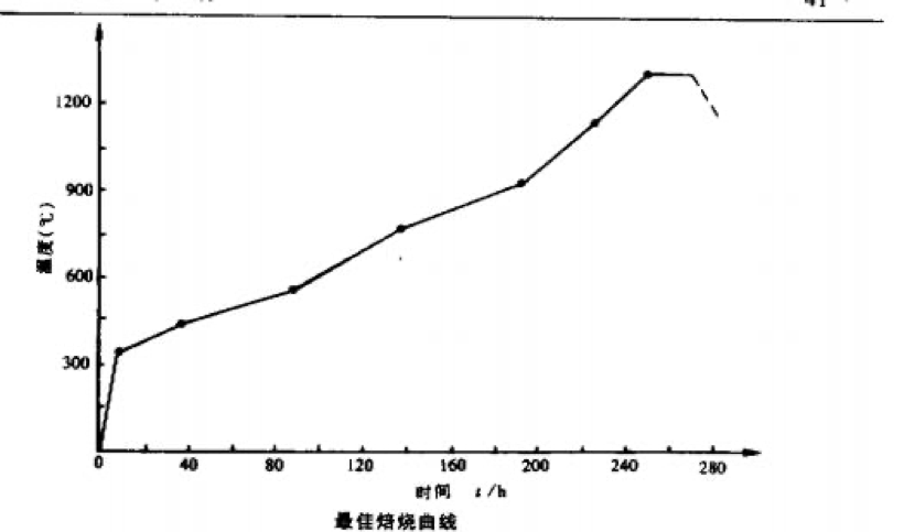振動成型后的坯件,需經(jīng)適當(dāng)焙燒,才能制出質(zhì)量合格的中頻電爐石墨坩堝。合理的焙燒制度是保證中頻電爐坩堝質(zhì)量,提高產(chǎn)品成品率的重要因素。實(shí)驗(yàn)證明,升溫過快,坩堝易裂;升溫過慢或焙燒時(shí)間過長,又降低生產(chǎn)率,提高成本。經(jīng)試驗(yàn),確定最佳焙燒曲線如附圖所示。焙燒最高溫度1250~(],焙燒總時(shí)間287小時(shí)。整爐焙燒,其成品率達(dá)99%以上。